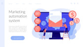 Narzędzia automatyzacji społeczne mediów 3d izometryczny strony docelowej.