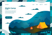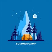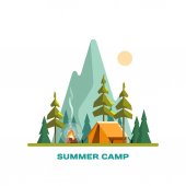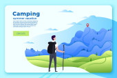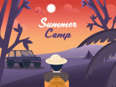 Wektor letni plakat kempingowy, człowiek i słońce ustawienie