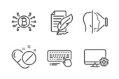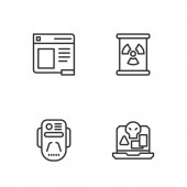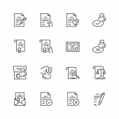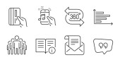 Karta debetowa, użytkownicy i ikony dzwonka zegar prosty zestaw. Dokument raportu, like i Copyright znaki laptopa. Portfel z kartą kredytową, kilka osób. Zestaw biznesowy. Ikona karty debetowej linii. Edytowalny skok