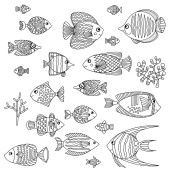 Zdjęcie "Ryby morskie i rośliny Kolorystyka zarys zestaw" może być wykorzystywane do celów osobistych i komercyjnych zgodnie z warunkami zakupionej licencji Royalty-free. Obraz jest dostępny do pobrania w jakości wysokiej rozdzielczości do 5760x3840.