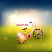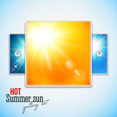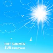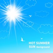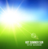 zielone pole i błękitne niebo lato słońce. Ilustracja wektorowa.