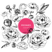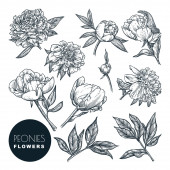 Kwiaty piwonii kontury. Ręcznie rysowane kwiaty na białym tle. Kwiatowy elementy ilustracji wektorowych.