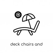 kontur leżaki i ikona wektor słońca. na białym tle prosty element linii ilustracja z koncepcji lato. edytowalne wektor obrys leżaki i ikona słońca na białym tle