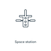 ikonę wektora stacji kosmicznej. na białym tle prosty element linii ilustracja z koncepcji astronomii. ikona na białym tle można edytować wektor stacji skok