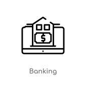 ikony wektorowej bankowości mobilnej. na białym tle prosty element linii ilustracji z koncepcji aplikacji mobilnej. edytowalny wektor skok ikona bankowości mobilnej na białym tle
