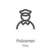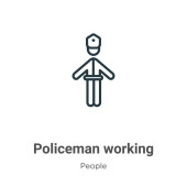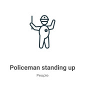 zarys policjant stojący w górę wektor ikona. na białym tle prosty element linii ilustracji od ludzi koncepcji. do edycji wektor skok policjant ikona na białym tle