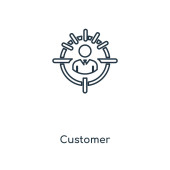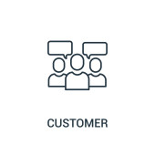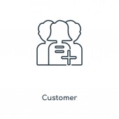 ikona wektorowa klienta konspektu. na białym tle prosty element linii ilustracji z koncepcji technologii. edytowalny wektor ikona klienci skok na białym tle