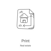 ikona wektora wydruku konturu. na białym tle prosty element linii ilustracji z koncepcji nieruchomości. edytowalny wektor obrysu ikona drukowania na białym tle