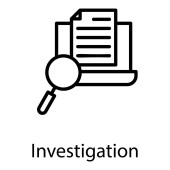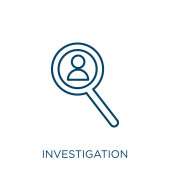 ikona wektorowa badania konspektu. na białym tle prosty element linii ilustracji z prawa i sprawiedliwości koncepcji. edytowalne wektor obrysu ikona dochodzenia na białym tle