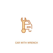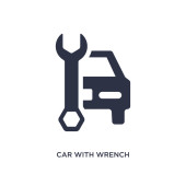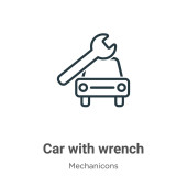 zarys samochodu z ikoną wektora klucza. na białym tle prosty element linii ilustracji od mechanicons koncepcji. edytowalny wektor pociągowy samochód z ikoną klucza na białym tle