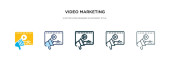 kontur wideo Marketing ikona wektorowa. na białym tle Prosta ilustracja z koncepcji marketingowej. edytowalny wektor obrysu wideo Marketing ikona na białym tle