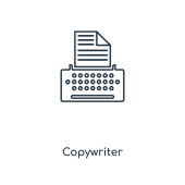 kontur copywriter ikona wektora. na białym tle prosty element linii ilustracji z Bloggera i influencer koncepcji. edytowalny wektor ikona copywriter na białym tle