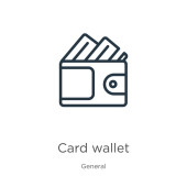 ikona wektorowa portfela karty konspektu. na białym tle prosty element linii ilustracji z ogólnej koncepcji. ikona Portfel karty skok wektor na białym tle