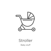 kontur dziecka ikona wózka. na białym tle prostej ilustracji elementu z koncepcji transportowej. ikona wózek do edycji wektor udar na białym tle