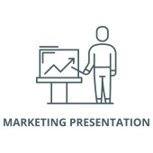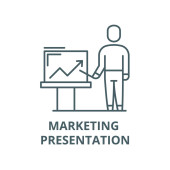 Prezentacja marketingowa ikona wektorowa prezentacji. na białym tle Prosta ilustracja z koncepcji marketingowej. ikony Prezentacja Marketing wektor skok na białym tle