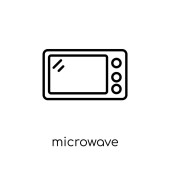 kontur ikony wektora mikrofalowego. na białym tle prosty element linii ilustracji z koncepcji mebli. edytowalny wektor udar ikona mikrofalówka na białym tle