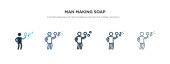 kontur człowieka, co pęcherzyki mydła ikona wektora. na białym tle prosty element linii ilustracji od ludzi koncepcji. ikona na białym tle mydło pęcherzyki wektor