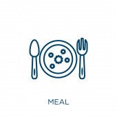 ikona wektora konturu posiłku. na białym tle prosty element linii ilustracji z koncepcji hotelu. edytowalny wektor obrys ikona posiłek na białym tle