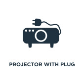 projektora z ikoną wektora wtyczki. na białym tle Prosta ilustracja z koncepcji kina. edytowalny wektor rzutnik z ikoną wtyczki na białym tle