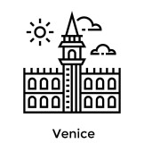 zarys weneckiej ikony wektorowej. na białym tle prosty element linii ilustracji z koncepcji podróży. edytowalne wektor pociągnięcie Wenecja ikona na białym tle