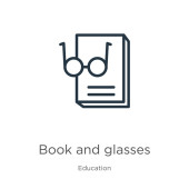 zarys książki i ikony wektor okularów. na białym tle prosty element linii ilustracji z koncepcji edukacji. edytowalny wektor pociągnięcia książka i okulary ikona na białym tle