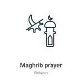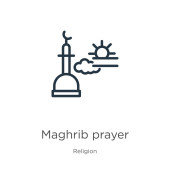 zarys Maghrib modlitwa wektor ikona. na białym tle Prosta ilustracja element linii z religii-2 koncepcji. ikona modlitwa Maghrib skok wektor na białym tle