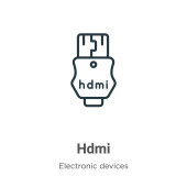ikonę wektora HDMI. na białym tle prosty element linii ilustracji z koncepcji urządzeń elektronicznych. edytowalny wektor pociągnięcia ikona HDMI na białym tle