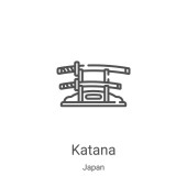 zarys ikony wektor Katana. na białym tle prosty element linii ilustracja z Azji koncepcji. edytowalny wektor skok Katana ikona na białym tle