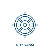 Zdjęcie "zarys ikony wektor koła buddyzmu. na białym tle prosty element linii ilustracji z koncepcji żywności. Buddyzm ikony ikona koło wektor na białym tle" może być wykorzystywane do celów osobistych i komercyjnych zgodnie z warunkami zakupionej licencji Royalty-free. Obraz jest dostępny do pobrania w jakości wysokiej rozdzielczości do 5760x3840.