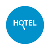 zarys okrągły Hotel ikona wektora. na białym tle prosty element linii ilustracji z koncepcji znaków. ikona Hotel okrągły do edycji wektor na białym tle
