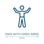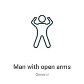 zarys człowiek z otwartych broni ikona wektor. na białym tle prosty element linii ilustracji z ogólnej koncepcji. edytowalny wektor skok człowiek z otwartą bronią ikonę na białym tle