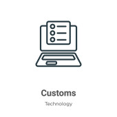 Zdjęcie "kontur ikony wektora celnego. na białym tle prosty element linii ilustracji z koncepcji technologii. edytowalne wektorowe pociągnięcie ikona celna na białym tle" może być wykorzystywane do celów osobistych i komercyjnych zgodnie z warunkami zakupionej licencji Royalty-free. Obraz jest dostępny do pobrania w jakości wysokiej rozdzielczości do 5760x3840.