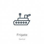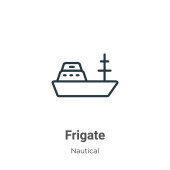 Zdjęcie "ikona wektor fregata. na białym tle Prosta ilustracja elementu linii z koncepcji żeglarskiej. edytowalny wektor ikona fregata skok na białym tle" może być wykorzystywane do celów osobistych i komercyjnych zgodnie z warunkami zakupionej licencji Royalty-free. Obraz jest dostępny do pobrania w jakości wysokiej rozdzielczości do 5760x3840.