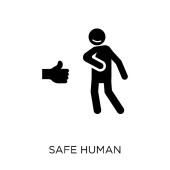 zarys bezpiecznej ikony wektora ludzkiego. na białym tle prosty element linii ilustracji z koncepcji uczuć. edytowalne wektor udar bezpieczny człowiek ikona na białym tle