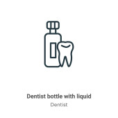 kontur butelki dentysta z ciekłym wektor ikona. na białym tle prosty element linii ilustracji od dentysty koncepcji. edytowalne wektor udar dentystyczny butelka z ikoną cieczy na białym tle