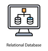 kontur ikony wektorowej systemu zarządzania relacyjnymi bazami danych. na białym tle prosty element linii ilustracji z koncepcji technologii. edytowalny wektor pociągnięcia relacyjnej bazy danych systemu zarządzania ikona