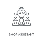 Zdjęcie "ikona wektor asystenta sklepu. na białym tle Prosta ilustracja element linii od sztucznej inteligencji koncepcji. ikona asystent warsztat wektor na białym tle" może być wykorzystywane do celów osobistych i komercyjnych zgodnie z warunkami zakupionej licencji Royalty-free. Obraz jest dostępny do pobrania w jakości wysokiej rozdzielczości do 5760x3840.