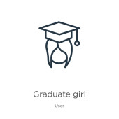 Zdjęcie "zarys absolwent dziewczyna wektor ikona. na białym tle prosty element linii ilustracji z koncepcji użytkownika. edytowalny wektor dziewczyna skok absolwent ikona na białym tle" może być wykorzystywane do celów osobistych i komercyjnych zgodnie z warunkami zakupionej licencji Royalty-free. Obraz jest dostępny do pobrania w jakości wysokiej rozdzielczości do 5760x3840.
