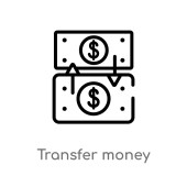zarys transferu pieniędzy ikona wektora. na białym tle prosty element linii ilustracji z koncepcji płatności. edytowalne wektor skok ikona transferu pieniędzy na białym tle