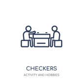 zarys torba z warcaby gra ikona wektor. na białym tle prosty element linii ilustracji z koncepcji rozrywki. edytowalne wektor skok torby z warcaby ikonę gry na białym tle