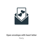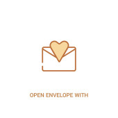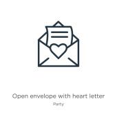 zarys otwartej koperty z ikoną wektora z literą serca. na białym tle prosty element linii ilustracji z koncepcji partii. edytowalny wektor obrysu otwarta koperta z ikoną litery serca na białym