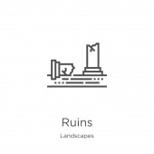 zarys ruiny ikona wektora. na białym tle Prosta ilustracja element linii z natury koncepcji. ikona do edycji wektor skok ruiny na białym tle