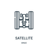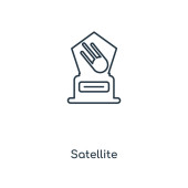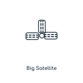 zarys dużego satelity ikonę wektora. na białym tle prosty element linii ilustracja z koncepcji astronomii. edytowalne wektor skok duży Satelita ikona na białym tle