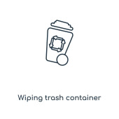 zarys wycierania pojemnika kosza ikona wektora. na białym tle Prosta ilustracja elementu linii z koncepcji czyszczenia. edytowalny wektor ikona Kosz Pojemnik wycieranie na białym tle