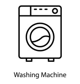 kontur pralka z ikoną wektora kropki. na białym tle prosty element linii ilustracji od ostatecznego glificons koncepcji. edytowalne pociągnięcia wektor pralka z ikoną kropki na białym