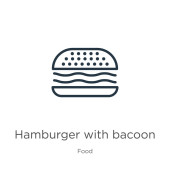 zarys Hamburger z ikoną wektora bacoon. na białym tle prosty element linii ilustracji z koncepcji żywności. edytowalny wektor Stroke Hamburger z ikoną bacoon na białym tle