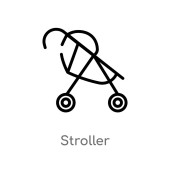 kontur dziecka ikona wektor spacerowy. na białym tle prosty element linii ilustracji od dzieci i koncepcji dziecka. ikona wózek do edycji wektor udar na białym tle