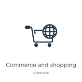 zarys handlu i ikona wektor zakupów. na białym tle prosty element linii ilustracji z koncepcji handlu. edytowalny wektor skok handlu i ikona zakupy na białym tle