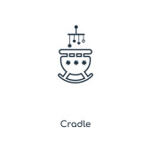 ikonę wektora kołyski konturu. na białym tle prosty element linii ilustracji z Kid i Baby koncepcji. edytowalny wektor pociągnięcie ikona kołyski na białym tle