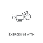 zarys ćwiczeń z ikoną wektor piłki gimnastyczna. na białym tle prosty element linii ilustracji z siłowni i fitness koncepcji. edytowalne pociągnięcie wektorowe ćwiczenia z ikoną piłki gimnastyczna na białym